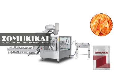 The Premade Bag Granule Liquid Packaging Machine is a highly versatile solution designed to package complex food products that contain both solid and liquid components, such as kimchi, pre-cooked meals, porridge, pickled vegetables, creamed corn, and seasoned food kits.